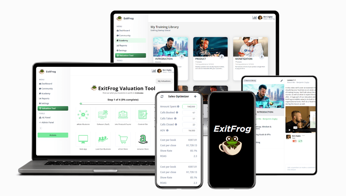 Results may vary and are dependent on user goals and effort. Neither ExitFrog nor Zogby LLC or any of its partners, affiliates, officers, owners, directors, agents, contractors, employees, licensors, service providers, suppliers, interns or associates (i.e. "Associated Parties") are registered Broker-Dealers, certified professional accountants (CPAs) or registered financial advisors. Neither ExitFrog, Zogby LLC, nor any of their Associated Parties provide financial advice, tax advice or broker services.